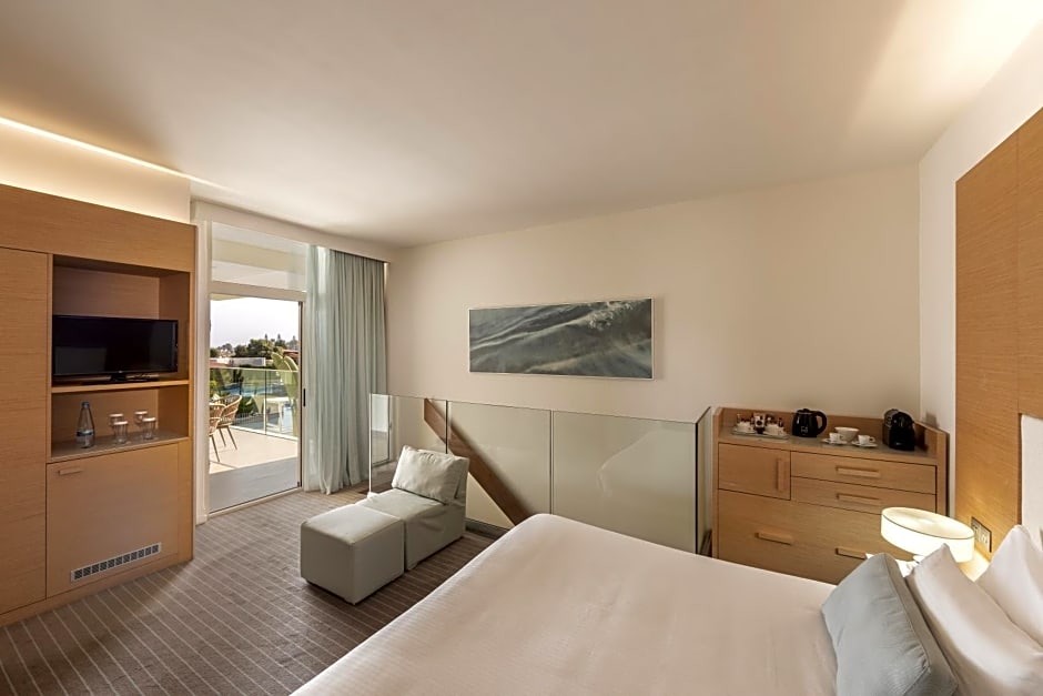 Elegant rooms with contemporary minimal design and comfortable space. They overlook the main center of Protaras, a lively resort during the summer season.